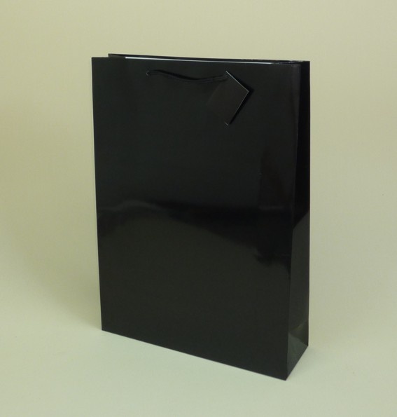 TORBA PAPIEROWA "XL" czarna w połysku (190g) - rozmiar: 32 x 10 x 44 cm